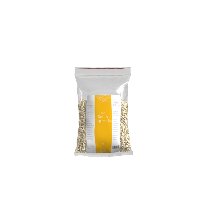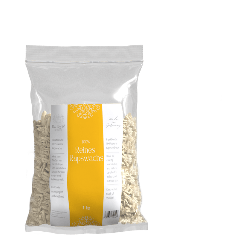 Unser Rapswachs besteht aus gehärtetem Rapsöl und wir in Deutschland hergestellt.